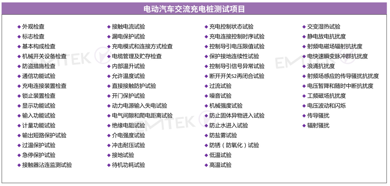 信測標準可為您提供專業(yè)的充電樁檢測,包括周期性檢驗檢測的技術性分析報告、協(xié)議一致性測試、互操作性測試等技術服務方案,為充電樁制造企業(yè)提供可靠的質量保障,助力電動汽車產業(yè)的繁榮發(fā)展。