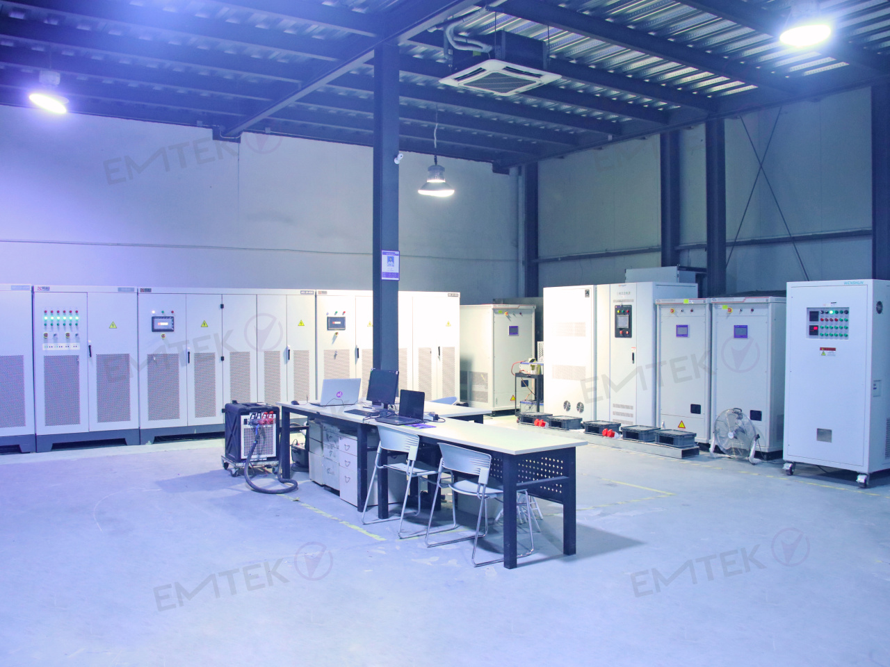 EMTEK信測標準新能源試驗擁有900kW、600kW、60kW、40kW等級的光儲充測試系統(tǒng),測試系統(tǒng)超過8套。各系統(tǒng)設備進行了ATE集成,系統(tǒng)按照預先選定的試驗項目進行流程化自動測試,測試效率高、測試數據準確。