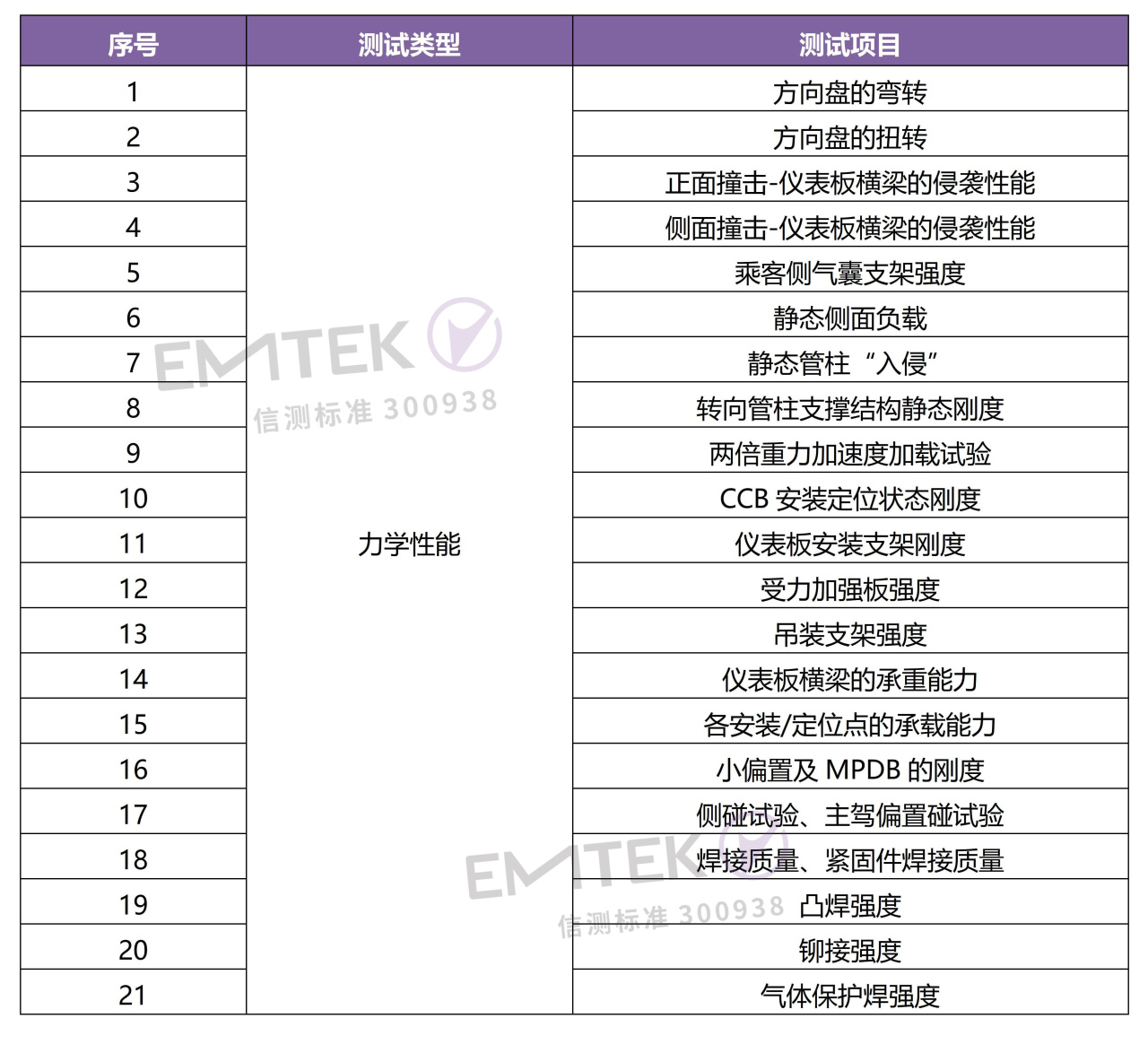 乘客側(cè)氣囊支架強(qiáng)度,靜態(tài)側(cè)面負(fù)載、各安裝/定位點(diǎn)的承載能力、側(cè)碰試驗(yàn)等;