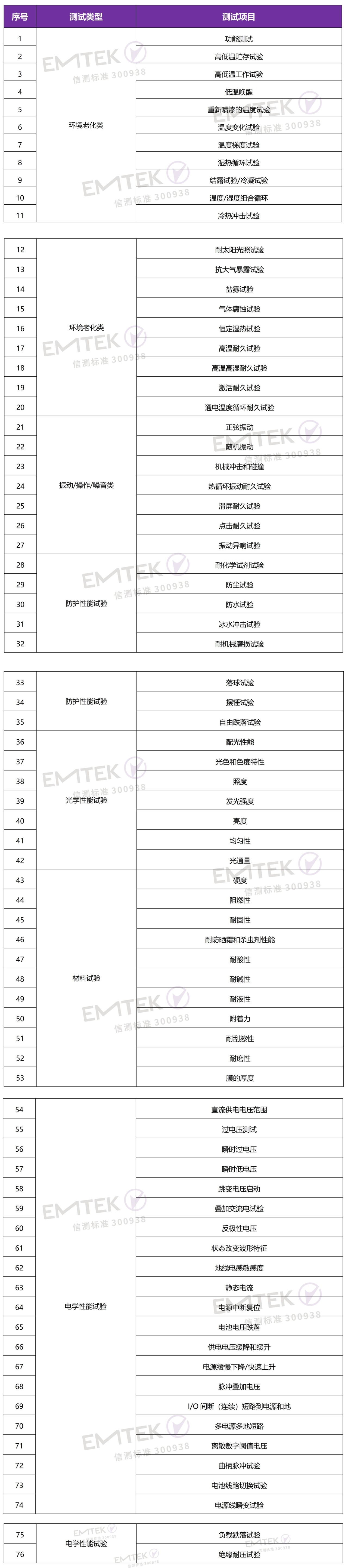 ISO 16750、GMW 3172、CETP 00.00 E 412、GS 95024-3-1、GS 95024-2-1、VW80000、B21 7100、B21 7110、B21 7120等