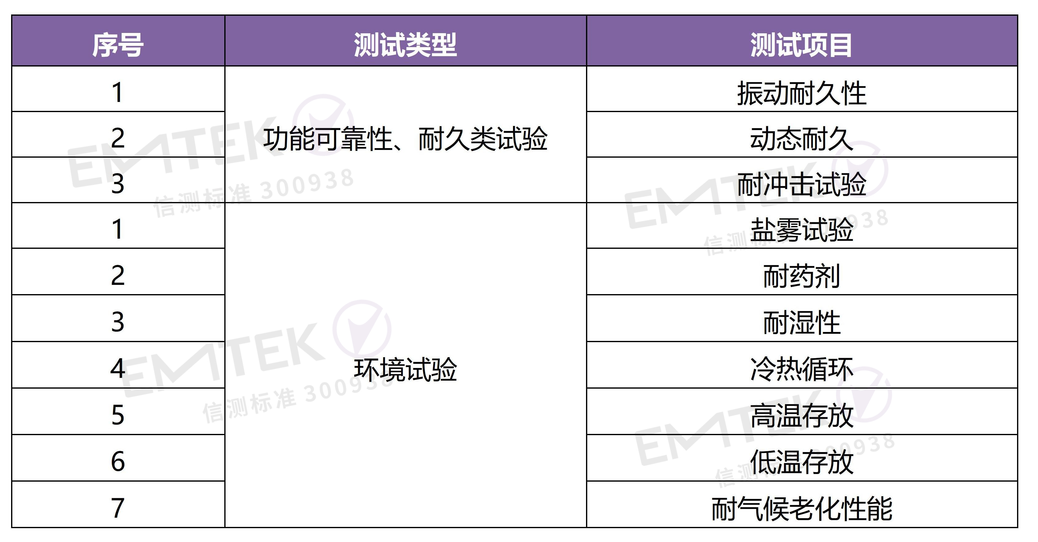 振動耐久性、動態(tài)耐久、耐沖擊試驗(yàn)等。