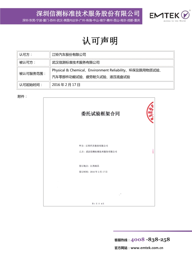 江鈴認(rèn)可證書