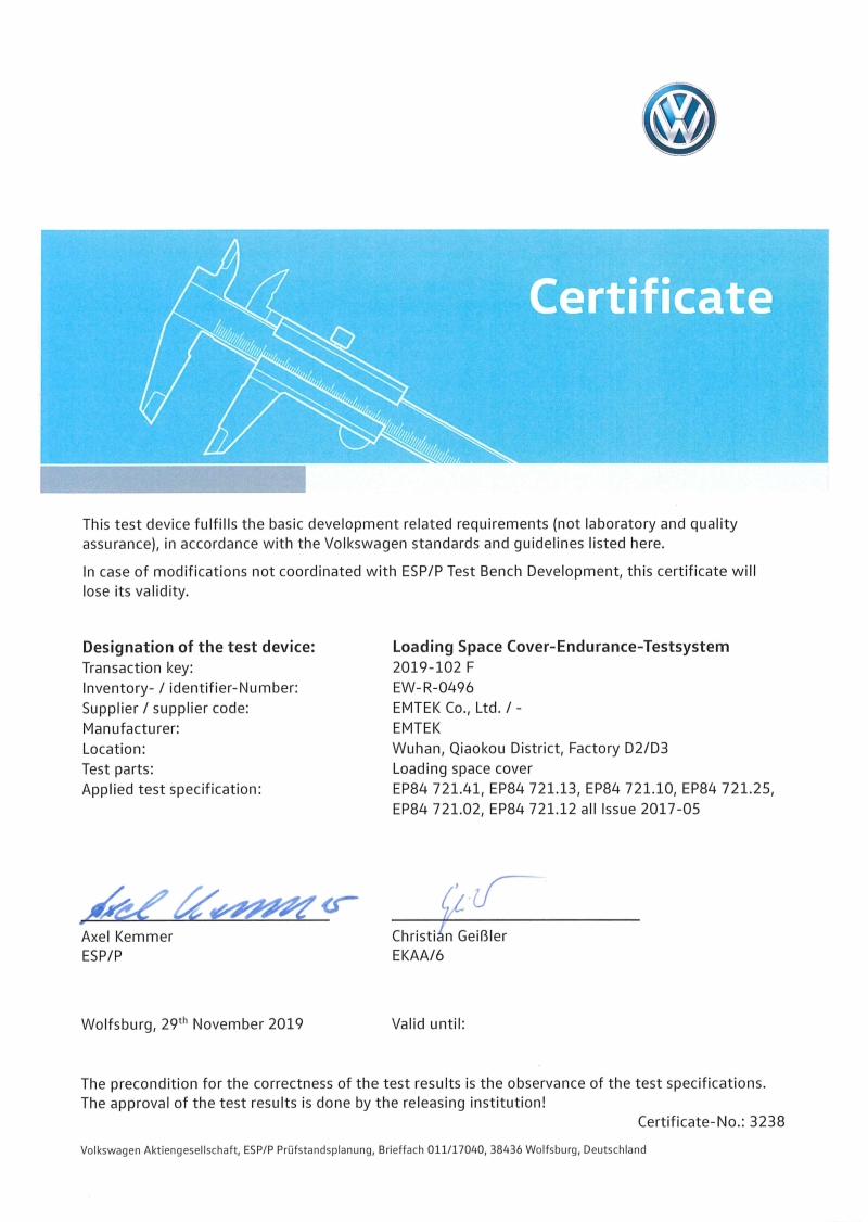 大眾認(rèn)可證書-耐久測試系統(tǒng)