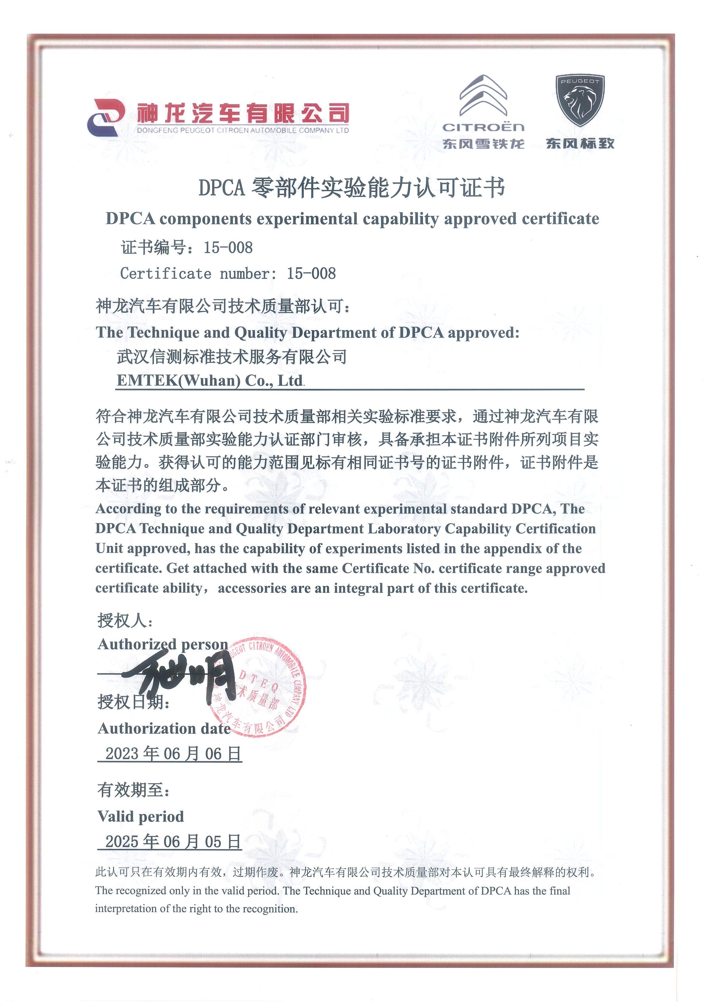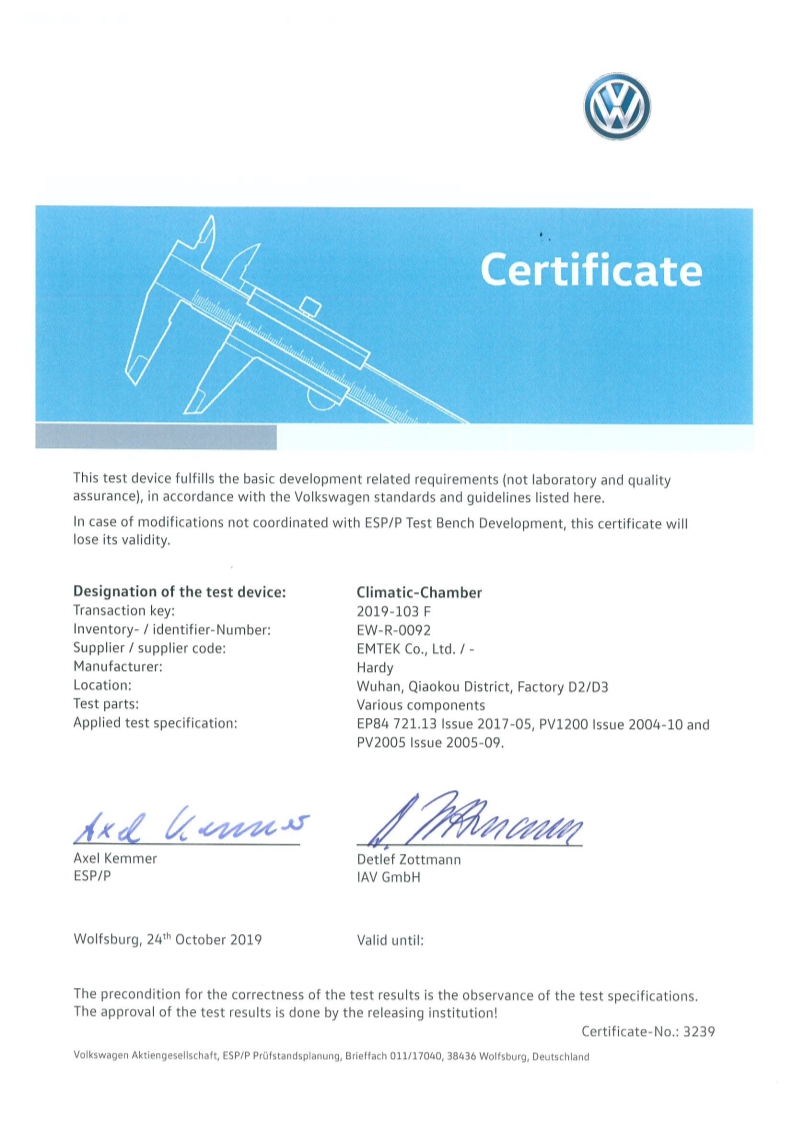 大眾認(rèn)可證書-氣候測試系統(tǒng)
