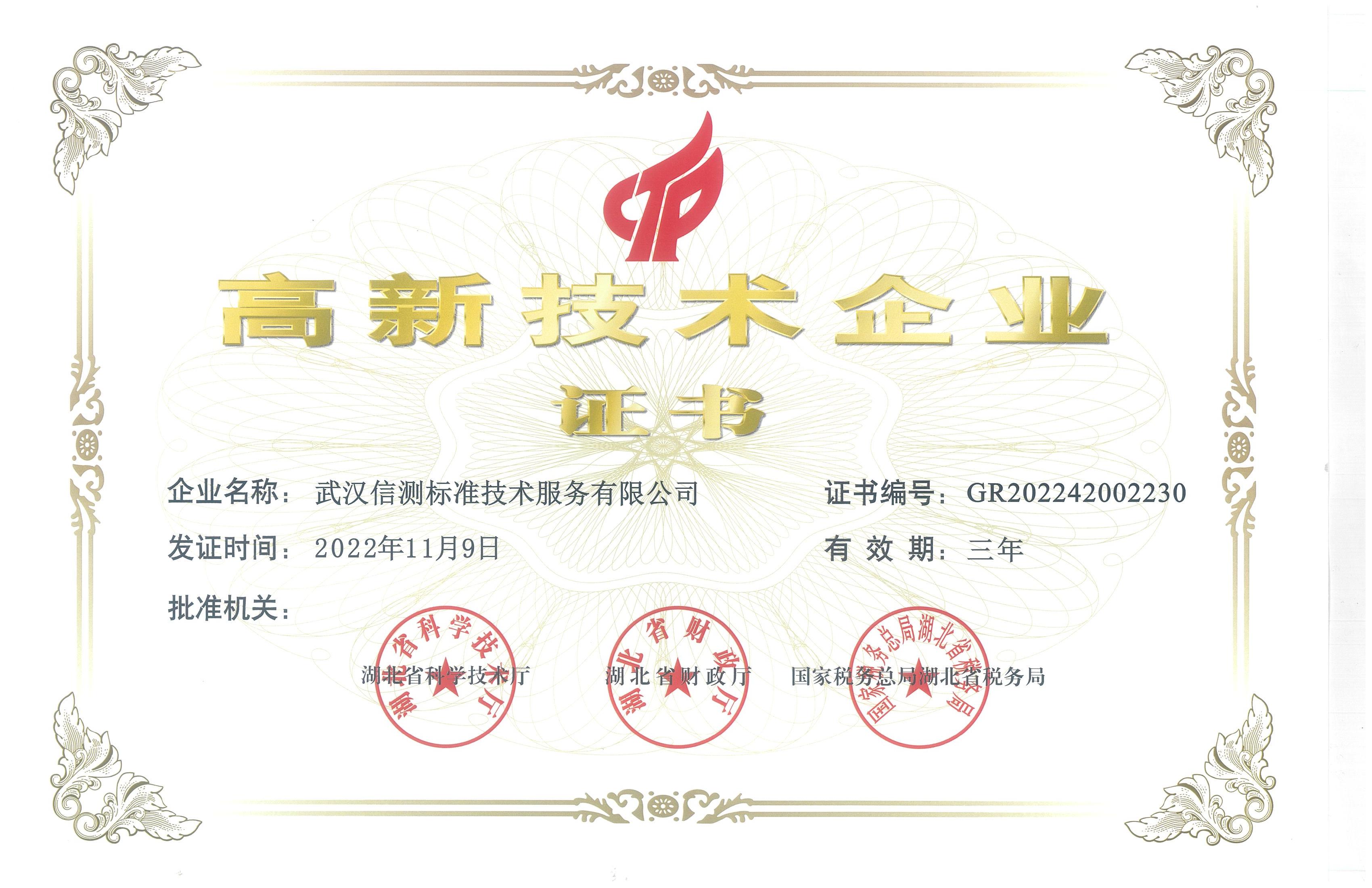 近日,武漢信測(cè)標(biāo)準(zhǔn)技術(shù)服務(wù)有限公司獲得由湖北省科學(xué)技術(shù)廳、湖北省財(cái)政廳、國家稅務(wù)總局湖北省稅務(wù)局聯(lián)合頒發(fā)的《高新技術(shù)企業(yè)證書》,本次高新技術(shù)企業(yè)審核認(rèn)定的順利通過,充分體現(xiàn)了相關(guān)部門對(duì)武漢信測(cè)近年來高質(zhì)量運(yùn)營、科技創(chuàng)新成果、研發(fā)實(shí)力等方面的高度認(rèn)可。