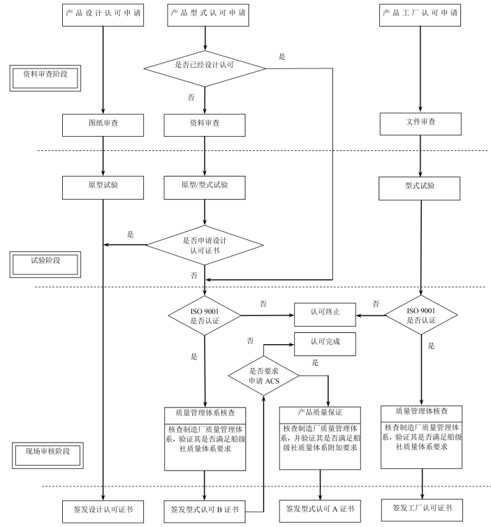 4、工廠認可(簡稱WA):系指CCS通過文件/圖紙資料審查、型式試驗和現場審核,以確認制造廠具備持續(xù)生產符合CCS規(guī)范要求和/或其他接受標準要求產品的能力和條件的評價過程。