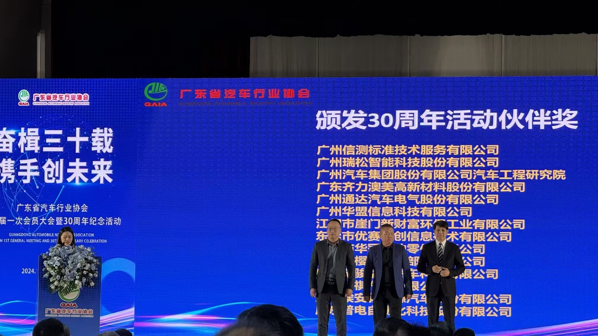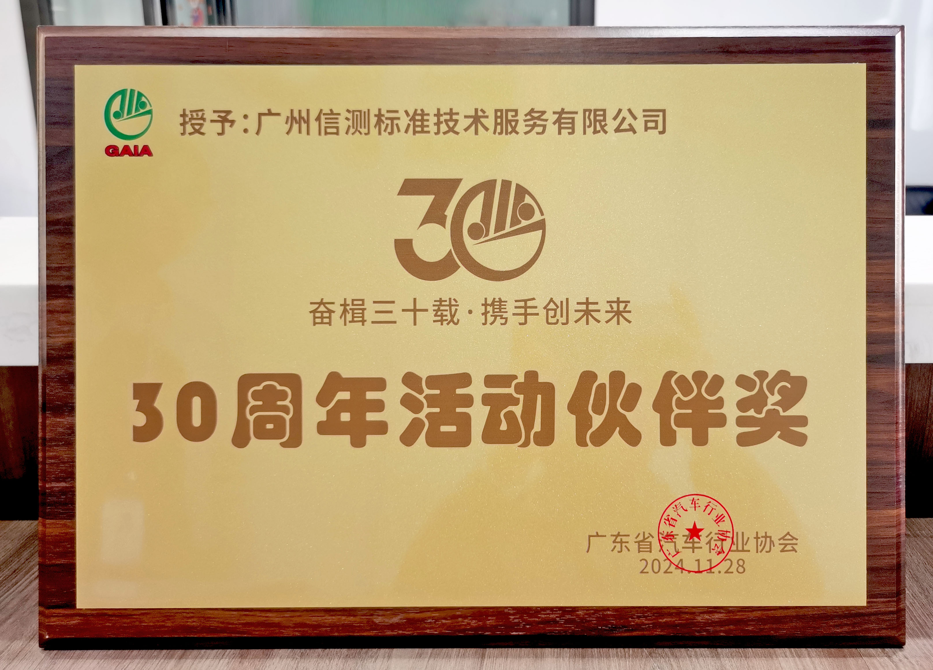大會(huì)現(xiàn)場(chǎng),信測(cè)標(biāo)準(zhǔn)獲頒30周年活動(dòng)伙伴獎(jiǎng),并被授予了廣東省汽車行業(yè)協(xié)會(huì)第八屆理事會(huì)理事單位榮譽(yù)牌匾。這是對(duì)過去信測(cè)標(biāo)準(zhǔn)為廣東省汽車行業(yè)發(fā)展所做努力的認(rèn)可和肯定,更是對(duì)未來信測(cè)標(biāo)準(zhǔn)助推汽車產(chǎn)業(yè)鏈及新能源產(chǎn)品檢驗(yàn)檢測(cè)服務(wù)實(shí)現(xiàn)更高質(zhì)量發(fā)展的期許。