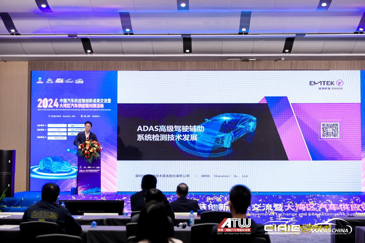 2024年12月4日,由中國(guó)汽車(chē)工業(yè)協(xié)會(huì)、廣東省汽車(chē)行業(yè)協(xié)會(huì)主辦,廣汽零部件有限公司、廣東省汽車(chē)工程學(xué)會(huì)、廣州汽車(chē)工業(yè)行業(yè)協(xié)會(huì)、廣州市智能網(wǎng)聯(lián)與新能源汽車(chē)產(chǎn)業(yè)人才聯(lián)合會(huì)等單位協(xié)辦,英佛會(huì)議展覽(上海)有限公司承辦的“2024中國(guó)汽車(chē)供應(yīng)鏈創(chuàng)新成果交流暨大灣區(qū)汽車(chē)供應(yīng)鏈對(duì)接活動(dòng)”在深圳國(guó)際會(huì)展中心舉辦。信測(cè)標(biāo)準(zhǔn)總經(jīng)理袁奇先生出席活動(dòng)并分享了主題為《ADAS高級(jí)駕駛輔助系統(tǒng)檢測(cè)技術(shù)發(fā)展》的演講。