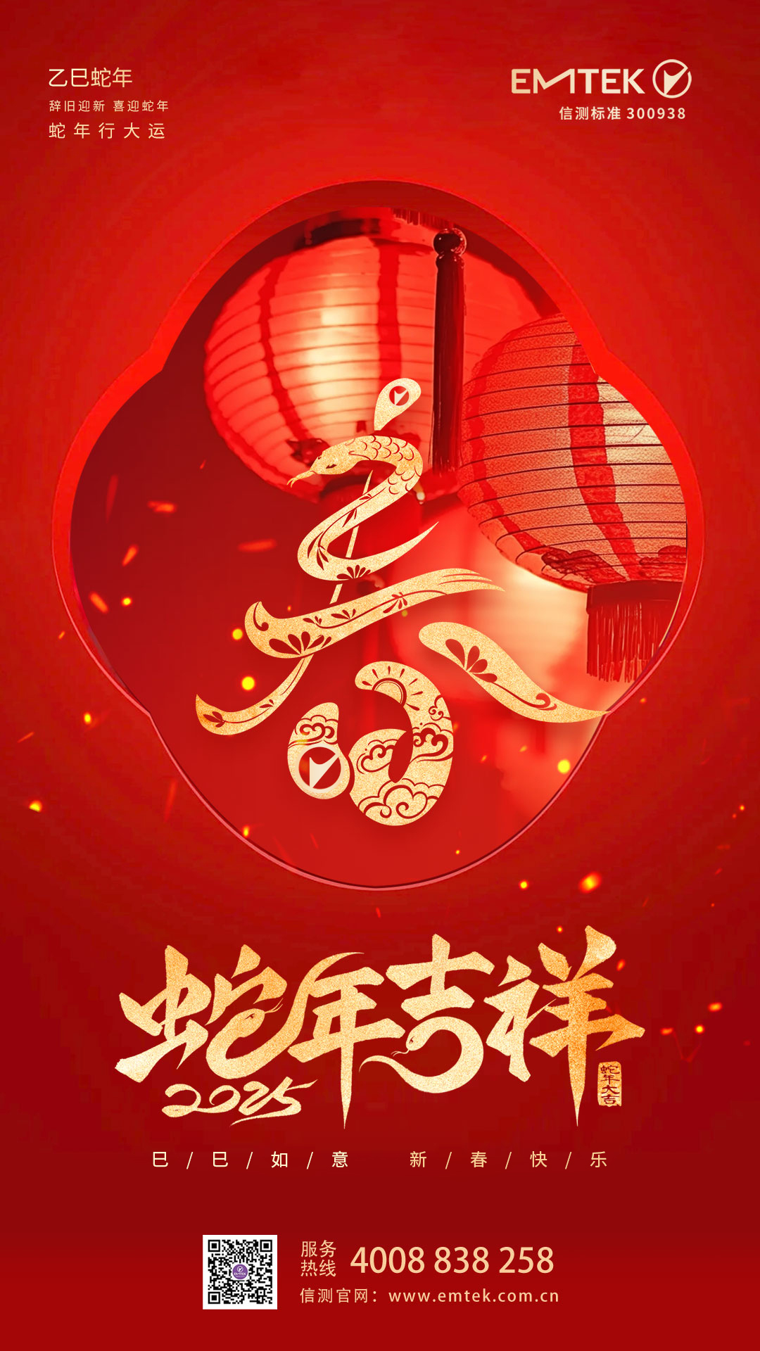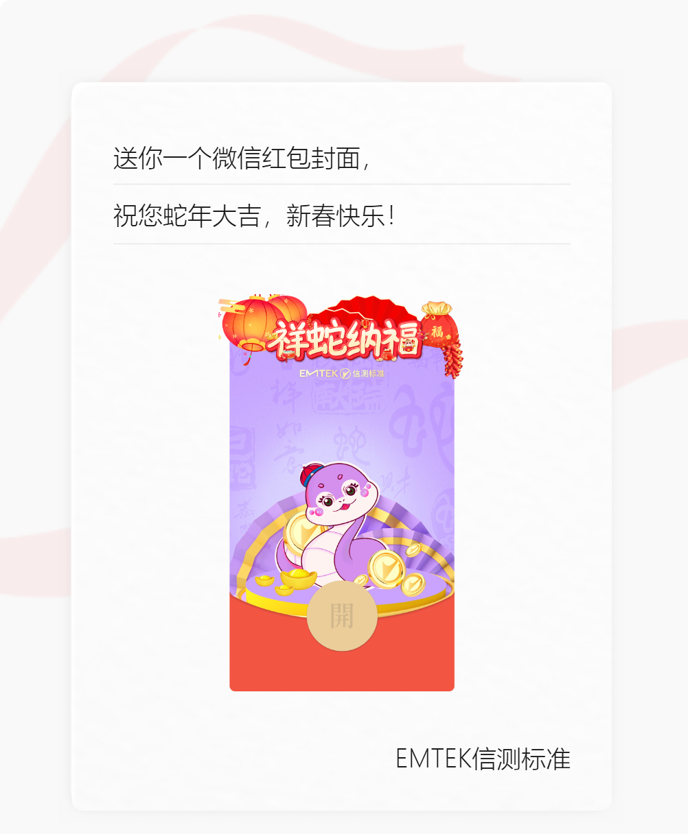 蛇年新春將至,EMTEK信測(cè)標(biāo)準(zhǔn)向一直以來(lái)關(guān)心、信任和支持我們發(fā)展的各級(jí)領(lǐng)導(dǎo)、合作伙伴、廣大客戶以及辛勤付出的全體員工及家屬,致以最誠(chéng)摯的問(wèn)候和最美好的祝福!