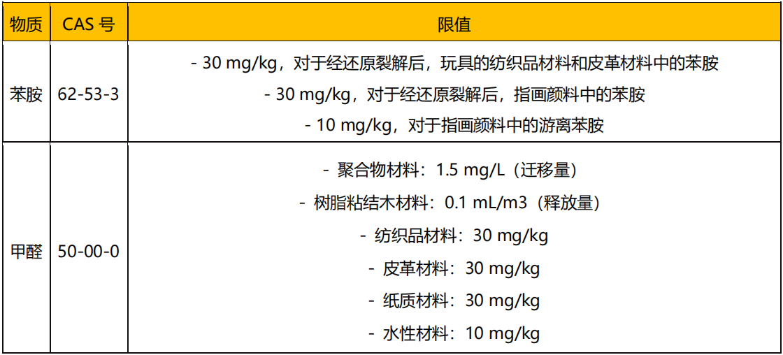 關(guān)于苯胺和甲醛的修訂將于 2022 年 12 月 15 日生效。該修訂不適用于在 2022 年 12 月 15 日前投放英國大不列顛市場的玩具。