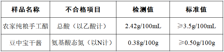 《食品安全國家標(biāo)準(zhǔn) 食醋》(GB 2719—2018)中規(guī)定,食醋中總酸(以乙酸計(jì))≥3.5g/100mL,該批次產(chǎn)品中總酸(以乙酸計(jì))檢測值既不符合食品安全國家標(biāo)準(zhǔn)規(guī)定,也不符合標(biāo)簽明示值規(guī)定“總酸≥3.5g/100mL”。