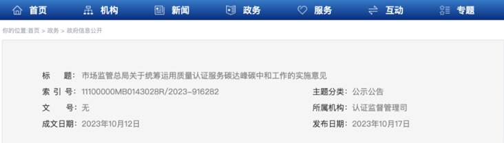 為深入貫徹落實(shí)黨中央、國務(wù)院關(guān)于碳達(dá)峰碳中和的重大決策部署,統(tǒng)籌運(yùn)用質(zhì)量認(rèn)證服務(wù)碳達(dá)峰碳中和工作,現(xiàn)提出如下意見。