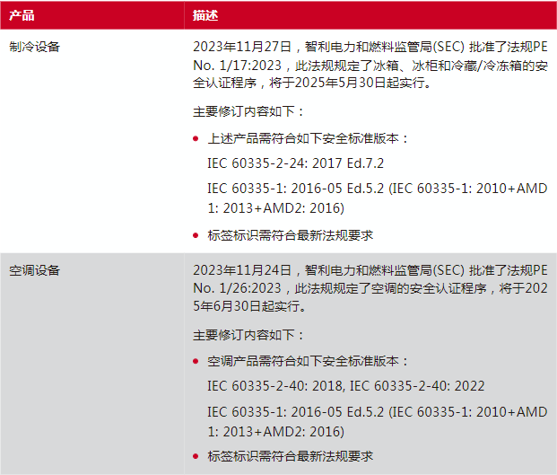 智利批準(zhǔn)制冷設(shè)備和空調(diào)產(chǎn)品的相關(guān)法規(guī)