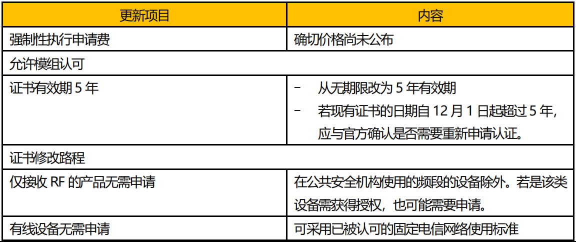 中國國家無線電管理委員會(SRRC)更新型號核準(zhǔn)代碼編碼規(guī)則以及證書模板,并已于 2023 年 12 月 1 日實施,具體更新如下: