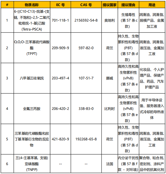 歐盟:6 項新物質將于 2025 年 1 月加入 SVHC 高度關注物質清單