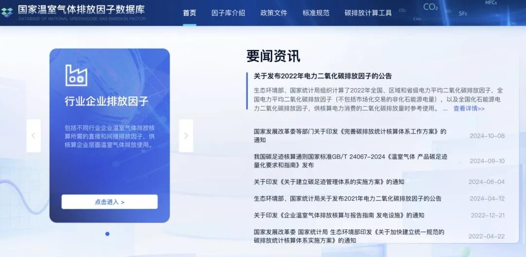 國家溫室氣體排放因子數據庫網站:https://data.ncsc.org.cn/factoryes/index