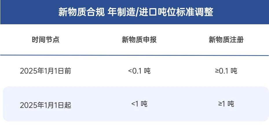 涉及申報噸位調整(0.1 噸→1 噸)和分類標識證明依據的事項,自 2025 年 1 月 1 日起執(zhí)行,涉及官方有害性審查和信息公開的事項,自同年 8 月 7 日起執(zhí)行。