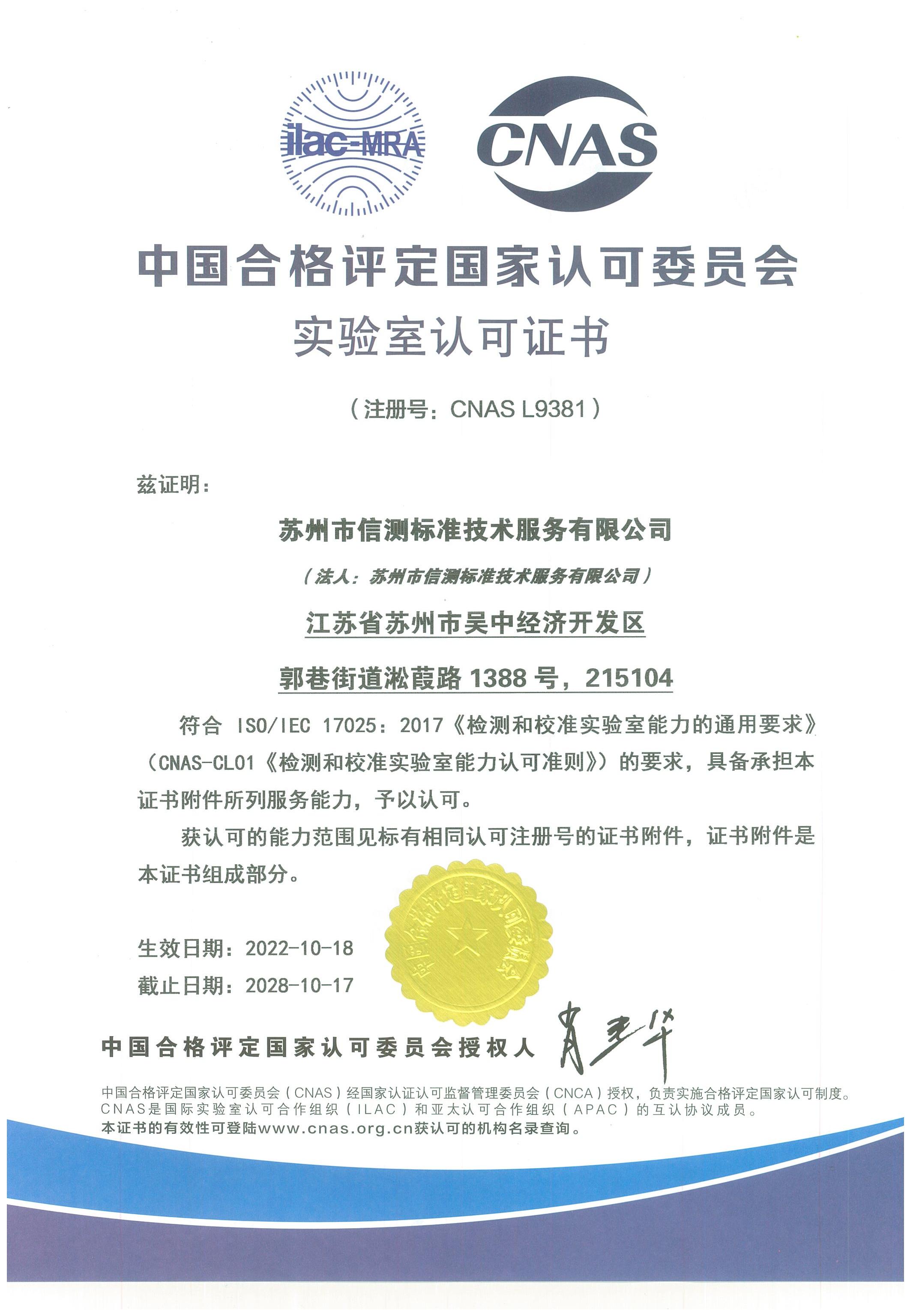Qualifications of Suzhou Lab