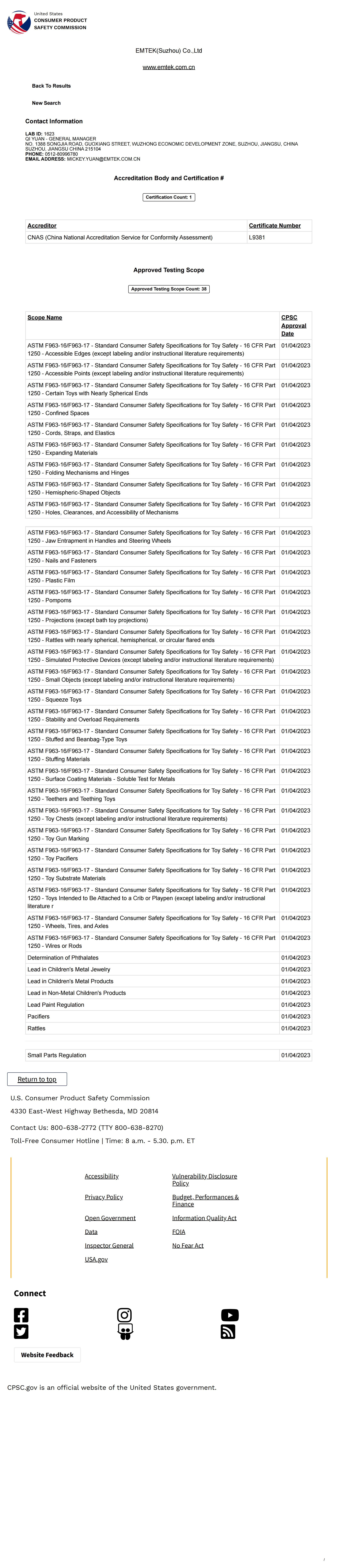 Qualifications of Dongguan Lab
